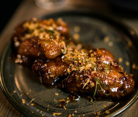 Kalmary w tempurze, ostre mayo, tempura crumbs, unagi sos -